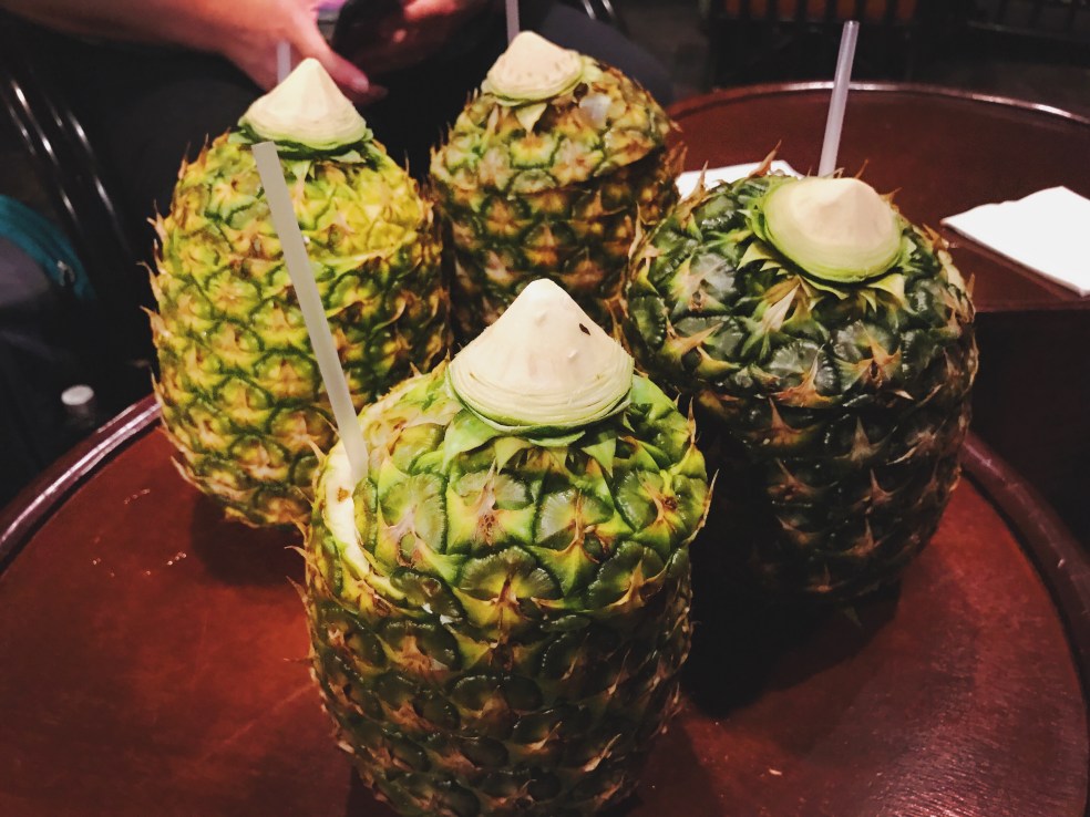 After that, we did a little more exploring (rant: the Moana Mercantile REALLY needs some Moana merchandise. I am not okay with this. I did not trot all the way to the Moana Mercantile for Lilo & Stitch gear, mmmkay?!), and then headed up to the Tambu Lounge for more drinks and appetizers. We were all on the same mission: LAPU LAPUS! When give the opportunity to drink out of a pineapple, YOU TAKE IT. And take it we did – seriously, what a treat. Seating was hard to find by this time of the night, but once we managed to find a table, it was comfortable and pleasant (Note: this lounge is located right next to Ohana, which I definitely want to make reservations at next time).